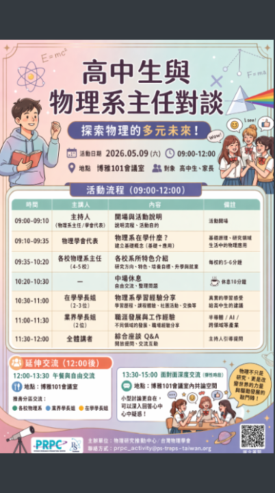 數學x物理~探索之旅:高中生與大學教授對談2026北部場